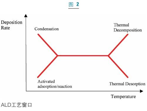 [page]由于ALD是基于在交互反應(yīng)過(guò)程中的自約束性生長(zhǎng),此工藝必須經(jīng)過(guò)精細(xì)的調(diào)節(jié)來(lái)達(dá)到最合適的結(jié)果。即使原子層淀積唯一的表面反應(yīng)特征降低了正?;瘜W(xué)氣相淀積對(duì)溫度、壓力和組分的嚴(yán)格要求,人們?nèi)匀恍枰獌?yōu)化ALD的參數(shù)以實(shí)現(xiàn)其準(zhǔn)確的厚度控制和超級(jí)的保型性。反應(yīng)室溫度是用來(lái)控制表面飽和的重要參數(shù)之一,作為ALD的基礎(chǔ),反應(yīng)室溫度起著兩個(gè)主要作用:提供原子層淀積反應(yīng)所需的激活能量和幫助清除單原子層形成過(guò)程中的多余反應(yīng)物和副產(chǎn)品。單原子層形成最理想的ALD溫度窗口,如圖2所示。ALD工藝窗口與反應(yīng)物的選擇、用量以及清除息息相關(guān)。為了獲得完全的單層覆蓋,足量的具有熱穩(wěn)定性的反應(yīng)物,即在反應(yīng)溫度下不會(huì)分解的反應(yīng)物,被引入到襯底上。人們往往使用過(guò)量的反應(yīng)物來(lái)確保實(shí)現(xiàn)完全覆蓋。通常采用以下幾種參數(shù)來(lái)控制反應(yīng)物的劑量:反應(yīng)物源的溫度、流量、分壓以及這個(gè)反應(yīng)室的壓力。