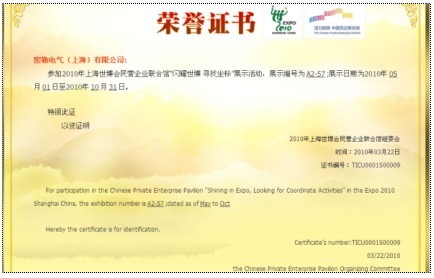 在2010世博會(huì)開幕之際,密勒電氣(上海)有限公司通過世博會(huì)企業(yè)聯(lián)合館“閃耀世博 尋找坐標(biāo)”官方審核,名字被刻入館內(nèi)水晶展示墻,充分體現(xiàn)了密勒的積累百年的實(shí)力和影響力。