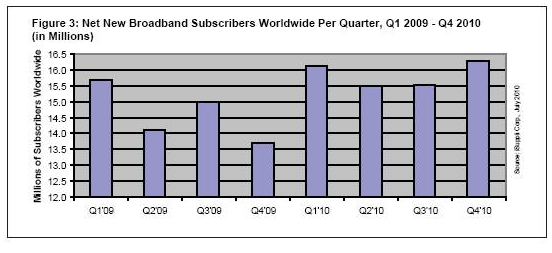 圖3所示為每季度新增寬帶用戶的預期數(shù)量,從2009年第一季度到2010年第四季度。