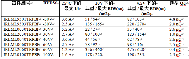 新款SOT-23 MOSFET 器件采用IR最新的中壓硅技術(shù),通過(guò)大幅降低90% RDS(on)顯著改善了電流處理能力,為客戶(hù)的特定應(yīng)用優(yōu)化了性能及價(jià)格。