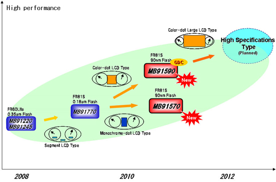 富士通半導(dǎo)體還同時(shí)宣布未來針對(duì)段顯示儀表板,即將推出2款MB91570系列的微控制器產(chǎn)品。該產(chǎn)品將于2010年12月底上市。