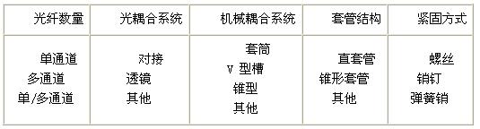 目前,大多數(shù)的光纖連接器是由三個(gè)部分組成的,即兩個(gè)配合插頭和一個(gè)耦合管。兩個(gè)插頭裝進(jìn)兩根光纖尾端;耦合管起對準(zhǔn)套管的作用。另外,耦合管多配有金屬或非金屬法蘭,以便于連接器的安裝固定。