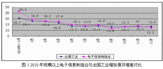2010年是“十一五”規(guī)劃收官之年,也是我國電子信息產(chǎn)業(yè)回升調(diào)整的重要一年,受擴內(nèi)需政策成效顯現(xiàn)和外需市場逐步回暖的共同作用,行業(yè)出現(xiàn)恢復(fù)性增長,總體呈現(xiàn)前高后穩(wěn)態(tài)勢。軟件產(chǎn)業(yè)和對外貿(mào)易出現(xiàn)新突破,經(jīng)濟效益穩(wěn)步提高,投資持續(xù)高位增長,產(chǎn)品結(jié)構(gòu)調(diào)整深入,產(chǎn)業(yè)鏈向上延伸的趨勢更加明 顯,企業(yè)、市場和區(qū)位布局出現(xiàn)新趨向,行業(yè)為推動信息化發(fā)展和促進兩化融合發(fā)揮積極作用,在國民經(jīng)濟發(fā)展和全球產(chǎn)業(yè)布局中日益占據(jù)重要地位。