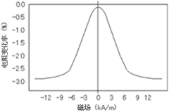 AMR單體是用鎳和鐵等制成的強磁性金屬合金。一般采用硅(Si)制成,當遇到施加的電流方向垂直的磁場時,阻抗值發(fā)生變化。這個現(xiàn)象就稱為磁阻效應,特性如圖1所示。它以0(零)H為軸,正負兩側對稱的特性,因此是不區(qū)別磁鐵的N極和S極的兩極檢測。