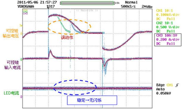 [圖7] 可控硅調(diào)光器誤動作時(shí)BD555AKFV的LED電流波形