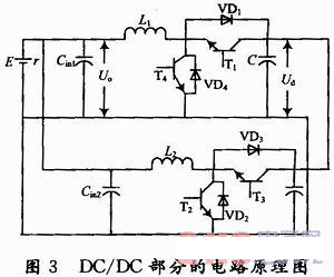 圖3所示的DC/DC變換器不但能對直流輸入電壓進行變換處理,而且還可以對直流輸入電流進行調節(jié)和控制,在DC/DC階段實現(xiàn)能量調控。