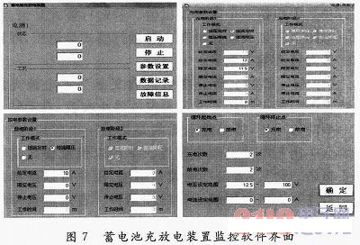 為了驗證課題所設計的蓄電池充放電裝置的功能,設計了檢測與監(jiān)控系統(tǒng)。軟件的部分界面如圖7所示。