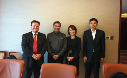 照片說(shuō)明:(從左到右)Mark Burr-Lonnon( Mouser歐亞區(qū)副總裁), Conrad Fernandes(LeCroy公司亞太區(qū)副總裁),Daphne( Mouser 亞太區(qū)市場(chǎng)與業(yè)務(wù)拓展總監(jiān)),管立虹(LeCroy公司亞太區(qū)目錄銷售經(jīng)理)