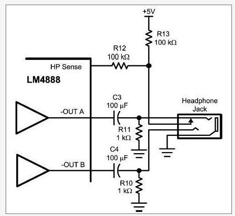 基于每個(gè)耳機(jī)檢測電路端口設(shè)計(jì)會(huì)採用不同要求,因此,該聲頻子系統(tǒng)提供兩個(gè)獨(dú)立的耳機(jī)(HP)控制輸入接腳。耳機(jī)的允許輸入可啟動(dòng)SE輸出耳機(jī)模式和關(guān)閉BTL輸出模式。耳機(jī)感應(yīng)檢測輸入需要用一個(gè)常規(guī)立體聲耳機(jī)插孔配合一起使用。剩余的HP邏輯輸入,能允許使用一個(gè)標(biāo)準(zhǔn)邏輯電平(Logic Level)來控制。