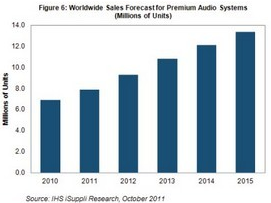 - 全球車載高檔音響系統銷售額增長率將達到兩位數