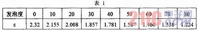 對于發(fā)泡電纜,ε與發(fā)泡度有直接聯(lián)系,PE材料發(fā)泡度與電容的關(guān)系參見表1。
