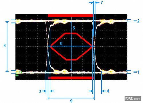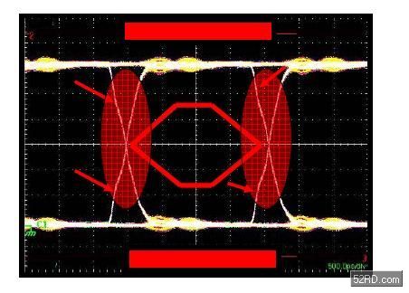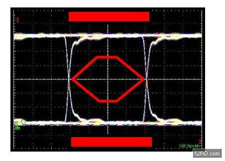 通過(guò)在示波器的垂直軸對(duì)數(shù)字信號(hào)進(jìn)行反復(fù)采樣、同時(shí)采用相應(yīng)數(shù)據(jù)率對(duì)水平時(shí)間掃描進(jìn)行觸發(fā)來(lái)生成眼圖。所獲得的圖形看上去象眼睛,如圖1所示。“眼睛”越大,數(shù)據(jù)完整性越高。通常采用模板(mask)來(lái)對(duì)可接受的信號(hào)質(zhì)量進(jìn)行定義。這模板由“眼睛”中間的六角形和“眼睛”上、下的矩陣組成。如果測(cè)得的信號(hào)跡線穿越模板的邊線,那么信號(hào)質(zhì)量就不可接受。USB2.0信號(hào)模板規(guī)范由USB應(yīng)用者論壇(USBIF,www.usb.org)提供,可參見(jiàn)USB2.0版規(guī)范第7.1.2.2章節(jié)。圖1中顯示了帶有詳細(xì)臨界點(diǎn)的眼圖。