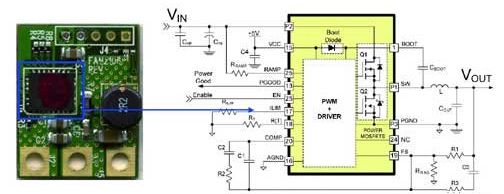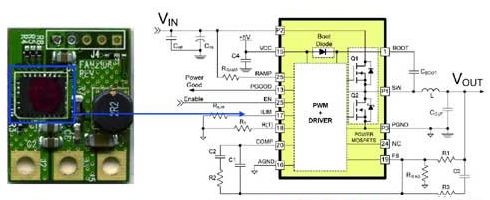 2.上述帶驅(qū)動器和MOSFET的分立式解決方案也備有8x8mm或6x6mm MLP封裝的MCM(多芯片 模塊)。這些DrMOS(DriverMOS)產(chǎn)品系列包括 8x8mm產(chǎn)品FDMD87xx和6x6mm產(chǎn)品FDMF67xx,可滿足不同的設(shè)計要求。而評估板則可協(xié)助設(shè)計人員熟悉應(yīng)用,并測試性能以便與分立式解決方案相比較(圖5)。