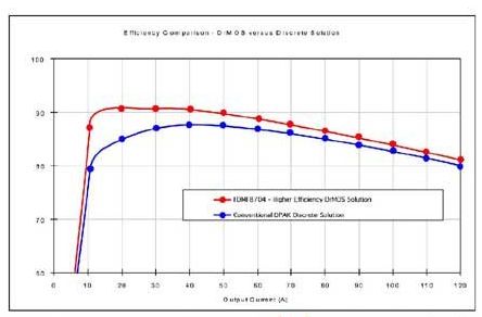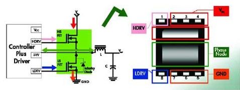 1.帶驅(qū)動器和MOSFET的分立式解決方案現(xiàn)在仍在普遍使用。為滿足所有設(shè)計要求,現(xiàn)在飛兆半導(dǎo)體提供的采用小尺寸熱性能增強型MLP(QFN) 封裝的產(chǎn)品,可獲得高系統(tǒng)性能。MOSFET實現(xiàn)了首先采用MLP封裝(見圖3所示)。其Power56和Power33產(chǎn)品系列采用最新的PowerTrench技術(shù),能夠同時提供超低RDSon 和低Qg,從而適用于高開關(guān)頻率應(yīng)用。鍵合技術(shù)可減小封裝的電感 ,提高封裝有限的ID ,適用于大電流應(yīng)用。其低端FET產(chǎn)品組合采用SyncFET集成了肖特基二極管 ,在實現(xiàn)高開關(guān)性能的同時降低了熱耗。
