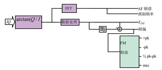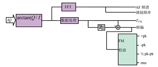 對此數(shù)組進(jìn)行FFT計算,得到AF頻譜,其基波頻率即調(diào)制頻率fmod ,根據(jù)AF頻譜,可以計算調(diào)制諧波失真和信納比;