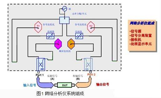 網(wǎng)絡(luò)分析儀主要由信號(hào)源、信號(hào)分離裝置、接收機(jī)和處理顯示單元組成,下面我們做詳細(xì)的說(shuō)明。