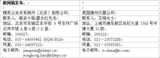 德州儀器 (TI) 半導(dǎo)體創(chuàng)新技術(shù)為未來世界開啟無(wú)限可能。攜手全球 80,000 家客戶,TI致力打造更智能、更安全、更環(huán)保、更健康以及更精彩的生活。TI把構(gòu)建美好未來的承諾付諸于日常言行的點(diǎn)滴,從高度負(fù)責(zé)地生產(chǎn)半導(dǎo)體產(chǎn)品,到關(guān)愛員工、回饋社會(huì)。這一切僅是 TI 實(shí)踐承諾的開始。TI 在納斯達(dá)克交易所上市交易,交易代碼為 TXN。TI 半導(dǎo)體產(chǎn)品信息中心免費(fèi)熱線電話:800-820-8682。