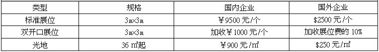 標(biāo)準(zhǔn)展位配備三面圍板(高2.5m)、公司楣板、咨詢臺(tái)1張、椅子兩把、光管2只、電源插座1個(gè)、廢紙簍1個(gè);光地不提供任何配置;展位搭建、用電、展具需另行租賃