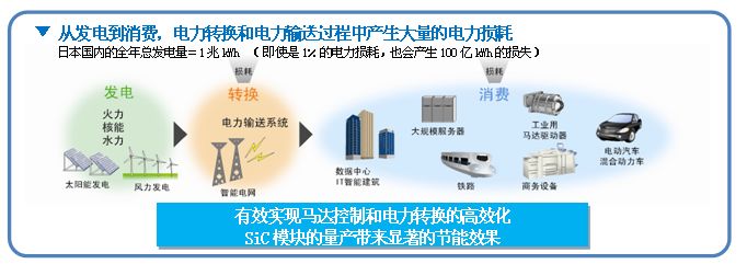 此產(chǎn)品安裝在工業(yè)設(shè)備和太陽(yáng)能電池等中負(fù)責(zé)電力轉(zhuǎn)換的變頻器、轉(zhuǎn)換器上,與普通的Si(硅)材質(zhì)的IGBT模塊相比,具備以下優(yōu)勢(shì),有效解決了世界能源和資源等地球環(huán)境問(wèn)題。