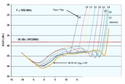 圖5:功率放大器的供電電壓和POUT怎樣影響ACLR