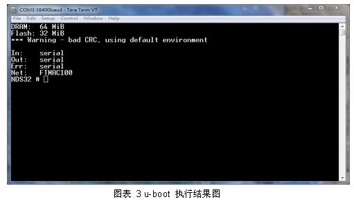 patch 完成的u-boot source code 可以產(chǎn)生ROM版的u-boot image,直接開機(jī)后的執(zhí)行結(jié)果如圖表3所示。