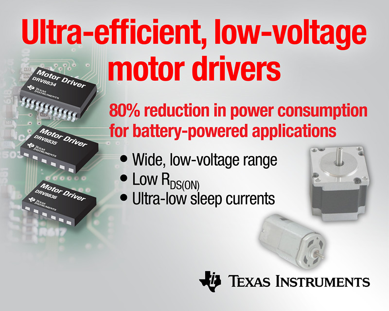 日前,德州儀器 (TI) 宣布推出 3 款面向有刷 DC 及步進(jìn)電機(jī)的最新低電壓器件,進(jìn)一步壯大其不斷豐富的高集成 DRV8x 電機(jī)驅(qū)動器產(chǎn)品陣營。該 DRV8834、DRV8835 以及 DRV8836 電機(jī)驅(qū)動器支持寬泛的低電壓工作范圍、低 RDS(ON) 與超低睡眠狀態(tài)電流,與性能最接近的競爭產(chǎn)品相比,功耗銳降達(dá) 80%,可延長電池使用壽命,改進(jìn)散熱性能,提高系統(tǒng)可靠性。此外,這些高集成器件還采用超小型封裝,與分立式解決方案相比,可將板級空間銳減達(dá) 95%。