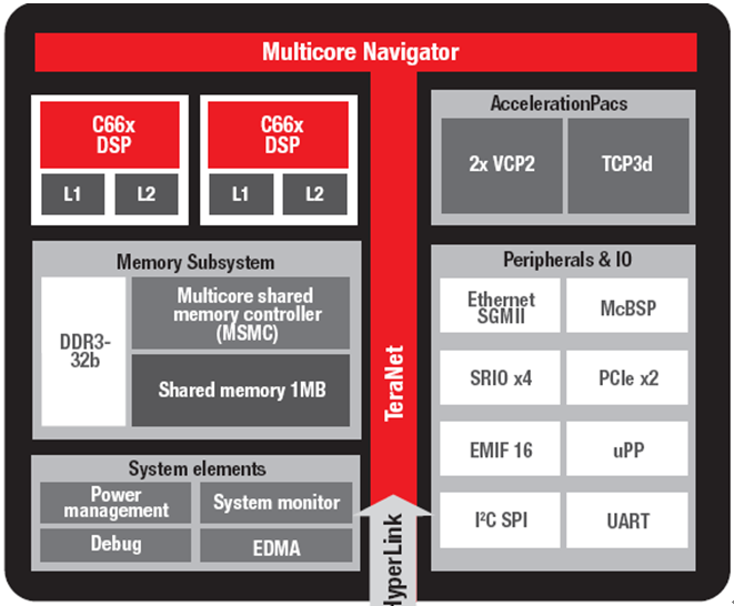 支持與其它 KeyStone 架構(gòu)器件高達(dá) 50GBaud 互連的 HyperLink 可實(shí)現(xiàn)資源擴(kuò)展;