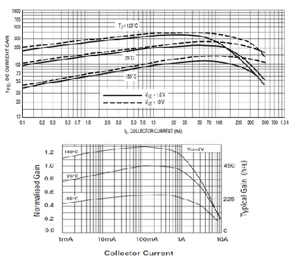 事實(shí)上,晶體管將與其組件進(jìn)行配對(MMBT3904用于3906,MMBT2907用于2222)。這兩個不同的配對僅用于比較。這些器件還具有更高的電流和更高的hfe, 如FMMT618/718對,其在6A電流時具有100 的hfe(請參見圖2)。與集成驅(qū)動器不同,分立器件是更低成本的解決方案,且有更高的散熱和電流性能。