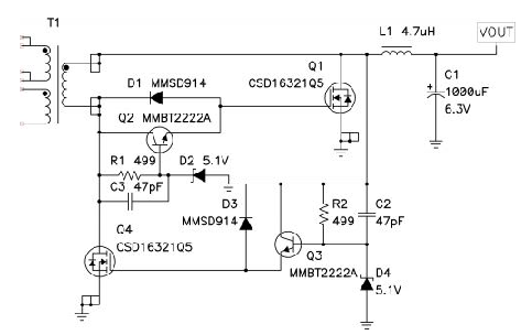 總之,許多具有同步整流器的電源都可以使用變壓器的繞組電壓來驅(qū)動同步整流器的柵極。寬范圍輸入或高輸出電壓需要調(diào)節(jié)電路來保護(hù)柵極。在圖 4 所示的同步反向結(jié)構(gòu)中,我們向您介紹了如何在保持快速的開關(guān)轉(zhuǎn)換的同時控制同步整流器柵極上的反向電壓。與之相類似在圖 2 的同步正向結(jié)構(gòu)中,我們向您介紹了如何限制同步整流器柵極上的正驅(qū)動電壓。