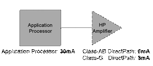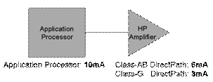 圖 11a 顯示 G 類耳機放大器的平均電流耗用量大約是應(yīng)用處理器的 10%。然而,幾年后,當應(yīng)用處理器電流降低至大約 10mA 時,G 類耳機放大器的電流耗用量將約為 現(xiàn)在的30%。