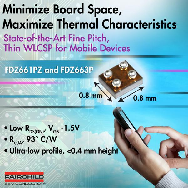便攜設(shè)備的設(shè)計人員面臨著在終端應(yīng)用中節(jié)省空間、提高效率和應(yīng)對散熱問題的挑戰(zhàn)。為了順應(yīng)這一趨勢,飛兆半導(dǎo)體公司(Fairchild Semiconductor)開發(fā)了FDZ661PZ和FDZ663P P溝道、1.5V規(guī)格的PowerTrench®薄型0.8mm x 0.8mm WL-CSP MOSFET器件。