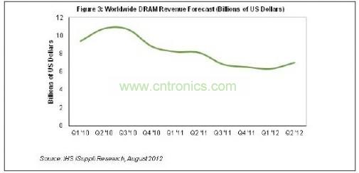 未來(lái)幾個(gè)季度市場(chǎng)前景如何,仍然有待觀察。面對(duì)令人失望的PC銷(xiāo)售情況,關(guān)于下半年的最初樂(lè)觀看法正在消退。IHS iSuppli公司預(yù)測(cè),如果第三和第四季度表現(xiàn)不佳,今年DRAM營(yíng)業(yè)收入可能遠(yuǎn)低于2011年。PC需求低迷,目前DRAM市場(chǎng)的下行風(fēng)險(xiǎn)大于幾個(gè)月以前。