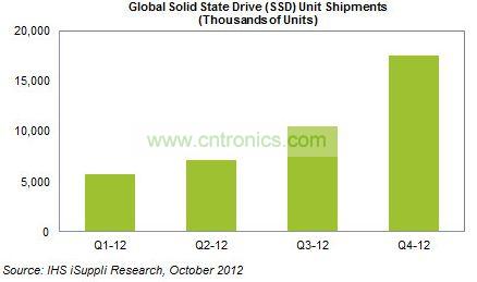 據IHS iSuppli提供的數(shù)據,SSD上半年全球出貨量共計1290萬塊,而第三季度單季就達到了1050萬塊,并在第四季度提升到1750萬塊。也就是說,下半年的出貨量將達到上半年的兩倍以上。