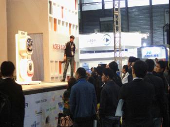 掛在墻上的洗衣機和用腦波開火車是第80屆中國電子展上極具震撼的場景,現(xiàn)場觀者如潮。在2012亞洲電子展的韓國大宇電子的展臺上,那些形似微波爐的產(chǎn)品其實是壁掛式滾筒洗衣機,雖然重量只有3公斤,但功能卻相當齊全。不遠處的展臺上,一列跑得慢吞吞的玩具火車開動起來不再依靠遙控器,而是人類的腦波。Stream TV展出的42寸裸眼3D顯示裝置,搭載了tream TV獨家的Ultra-D裸眼3D影像技術(shù),據(jù)公司客戶經(jīng)理呂昱葳介紹,任何時間,任何地點,Ultra-D技術(shù)都可以把用戶所有的電視節(jié)目甚至家庭錄影實時轉(zhuǎn)換成裸眼3D效果。