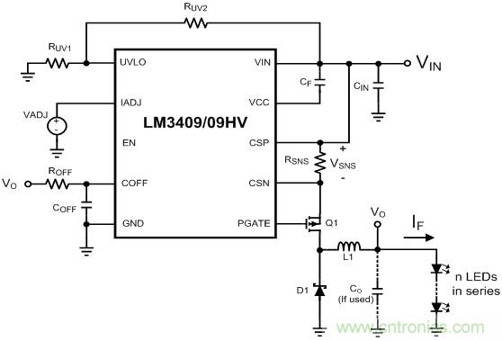 圖4:LM3409/09HV降壓LED驅(qū)動器