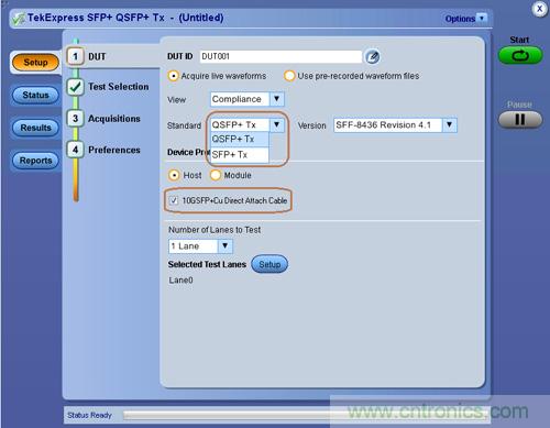 SFP+QSFP+Tx解決方案利用簡單的菜單驅(qū)動(dòng)式測(cè)量設(shè)置以及提供一鍵式一致性測(cè)試,加上自動(dòng)的“通過/失敗”報(bào)告生成,幫助提高測(cè)試測(cè)量效率。除標(biāo)準(zhǔn)的一致性要求外,該解決方案還支持設(shè)計(jì)鑒定,并具有對(duì)測(cè)試配置(如分析窗口和其他參數(shù))的靈活控制。如對(duì)設(shè)計(jì)的一致性測(cè)試失敗,使用者可利用DPOJET(抖動(dòng)和定時(shí)分析)設(shè)置文件來減少調(diào)試時(shí)間。