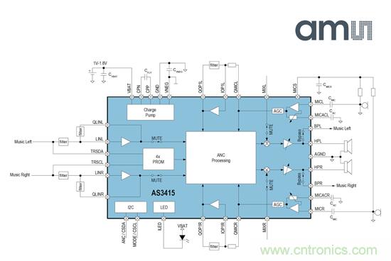 圖3:ams推出AS3415主動(dòng)降噪揚(yáng)聲器驅(qū)動(dòng)芯片