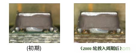 磁性樹脂和鼓芯都沒(méi)有看見(jiàn)裂紋產(chǎn)生。另外,電氣特征的變化也控制在±1%以內(nèi)。-40℃⇔+105℃的環(huán)境下外觀上沒(méi)有任何的破壞,并且電氣特征保持穩(wěn)定,這使其成為了能夠滿足車載用電子元器件性能要求的產(chǎn)品。