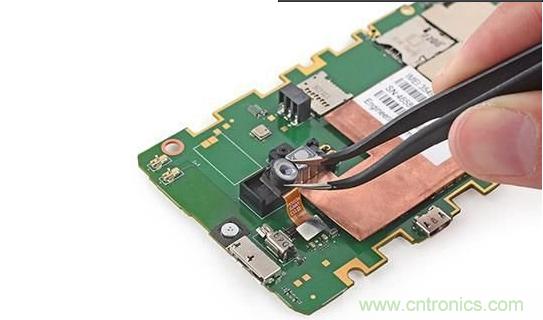 主板上搭載了為較低感測(cè)器陣列提供電氣接地與熱耗散的銅。iFixit表示,造成高熱量產(chǎn)生的罪魁禍?zhǔn)资莵碜允謾C(jī)上的一連串紅外線LED。