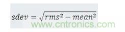 rms值現(xiàn)在變高了,因?yàn)榘似屏?。知道均值和rms值后就可以計(jì)算sdev值了。