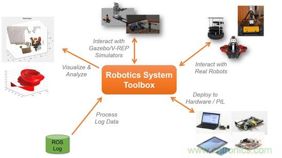 現(xiàn)在,機(jī)器人研究人員和工程師們可以在單個(gè)統(tǒng)一的設(shè)計(jì)環(huán)境中開發(fā)機(jī)器人算法,在支持ROS 的機(jī)器人和機(jī)器人仿真器(如 Gazebo 和 V-REP)上測(cè)試和部署機(jī)器人算法。它通過減少從 MATLAB程序轉(zhuǎn)換到 ROS程序所需的手動(dòng)修改時(shí)間,預(yù)留了更多的時(shí)間來測(cè)試和調(diào)試算法。
