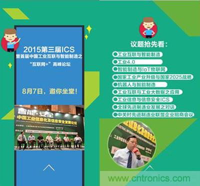 【導(dǎo)讀】gongkong®與工信部電子科學(xué)技術(shù)情報研究所聯(lián)合主辦,由中國儀器儀表學(xué)會與OPC中國基金會支持的2015第三屆工業(yè)信息化及信息安全發(fā)展論壇暨首屆中國工業(yè)互聯(lián)與智能制造之“互聯(lián)網(wǎng)+”高峰論壇,將于2015年8月7日在北京歌華開元大酒店召開。