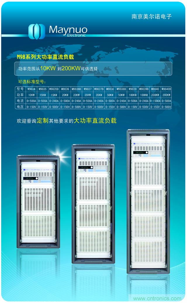 【導(dǎo)讀】近日,南京美爾諾推出多種型號的M98系列大功率直流負載,可提供選擇的功率范圍是10KW到200KW。如有其他要求,歡迎垂詢??靵砜纯窗?。