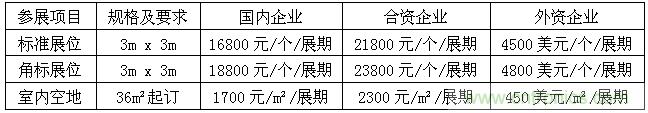 ②標(biāo)準(zhǔn)展臺(tái):中英文楣板、9㎡地毯、方桌1張、折椅2把、射燈2只、220V電源插座1支、紙簍