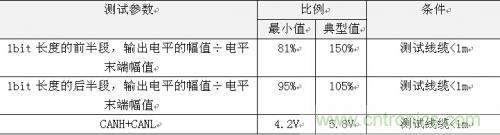 示波器測量1bit的差分電平顯性位的末端幅值,然后在測量前半段(50%)差分電平最大值,兩者相除,如果在81%~150%則通過;
