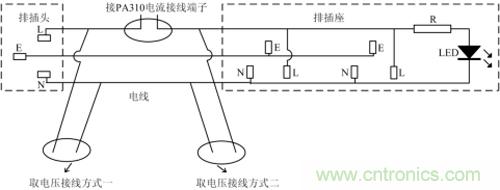 1.電源排插上是否存在LED指示燈,如果有,那么這個(gè)指示燈的電流就會(huì)被作為負(fù)載電流進(jìn)行測(cè)量。排插接線如圖1所示,大多數(shù)排插都會(huì)有LED指示燈,通電后流經(jīng)LED燈的電流一般為mA級(jí),因此,對(duì)被測(cè)電流帶來誤差,尤其是測(cè)待機(jī)功耗影響更大。