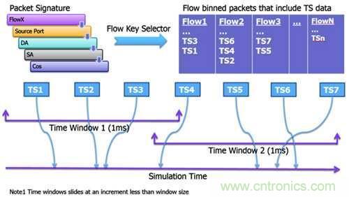某些情況下,可能需要數(shù)百萬個(gè)資料包才能切中當(dāng)前設(shè)計(jì)中穩(wěn)態(tài)分析的重點(diǎn)。以測量兆百萬位元組乙太網(wǎng)交換機(jī)的流量位元速率為例。采用虛擬乙太網(wǎng)簽名生成和封包時(shí)間戳記(TS)來計(jì)算這些數(shù)據(jù)。