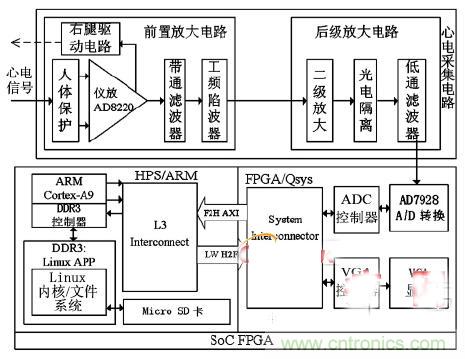【導(dǎo)讀】本設(shè)計實(shí)現(xiàn)了一種基于片上系統(tǒng)現(xiàn)場可編程門陣列(SoC FPGA) 的心電信號(ECG)檢測系統(tǒng)。系統(tǒng)通過具有高輸入阻抗、高共模抑制比和低噪聲的前置采集放大電路,實(shí)現(xiàn)心電信號的拾取和預(yù)處理。