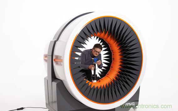 本次MVG向中國市場推介的重點產品,是千里迢迢從法國空運至展館的緊湊便攜式天線測量系統(tǒng)StarLab,這個高度僅為1.8米的測試系統(tǒng),可幫助客戶快速建立起一個嵌入式天線的測試平臺,無需暗室便可進行天線測量,測試頻率范圍為650MHz-18GHz,在節(jié)約時間、提高研發(fā)效率和保密性方面,其為客戶提供的價值不言而喻。