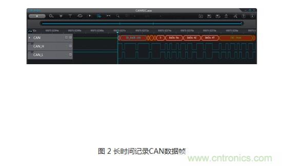 記錄模式非常適用于低速串行協(xié)議分析,如CAN、LIN、FlexRay、SPI、IIC、UART等。不間斷長時間的記錄,確保了數(shù)據(jù)幀的完整性,排查偶發(fā)異常故障非常有用。
